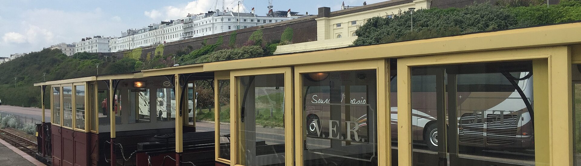 Eine weitere Abwechslung am Strand bietet die Volk´s Electric Railway Brighton. Sie ist die weltweit älteste elektrische Eisenbahn. Der kleine Zug mit den historischen, offenen Waggons fährt am Strand entlang vom Aquarium bis Black Rock nahe der Brighton Marina. Ungefähr im Viertelstundentakt kann man zu- und aussteigen und mit dem nächsten Zug wieder weiterfahren. Bleibt man sitzen dauert die Hin- und Rückfahrt ca. 30 Minuten. volkselectricrailway.co.uk