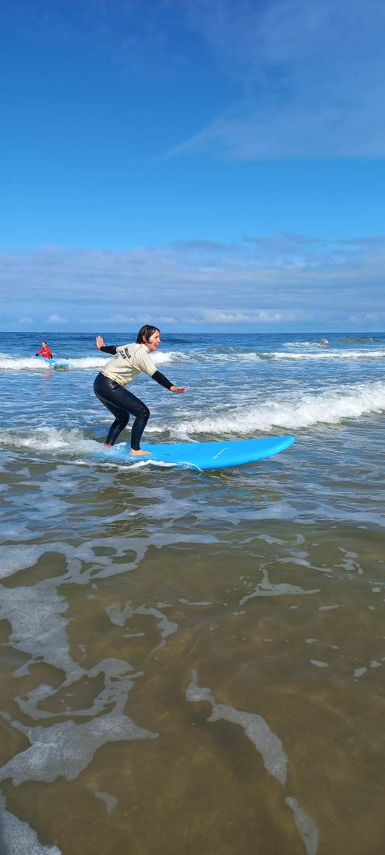 Mit einem Surflehrer, der Roaming-Unterricht rund um La Rochelle anbietet. Das heißt, er bringt die Schüler dorthin, wo die Wellen sind, um einen perfekten Kurs zu gewährleisten. An Tagen, an denen die Bedingungen das Surfen nicht zulassen, wird der Unterricht durch Skateunterricht mit demselben Lehrer ersetzt.